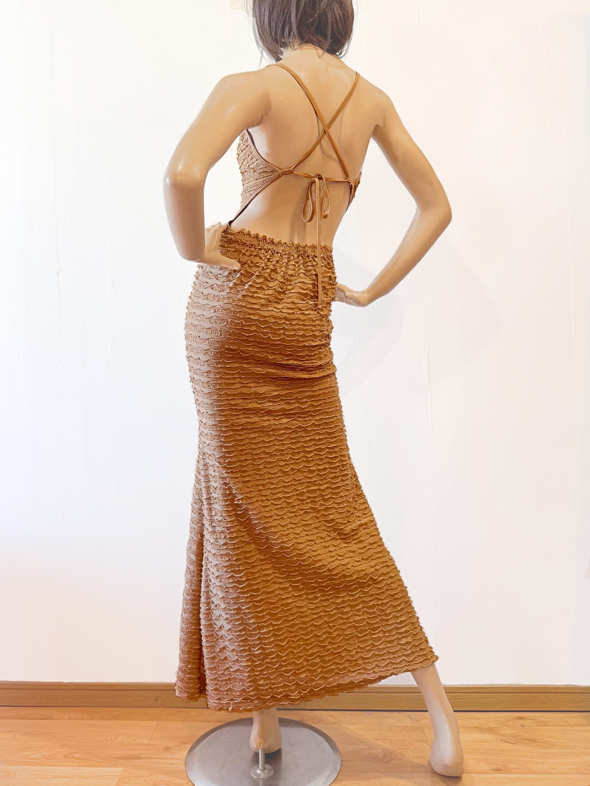 V50美シルエット セクシー調節ストラップ バックロングドレス(テクスチャーストレッチ生)